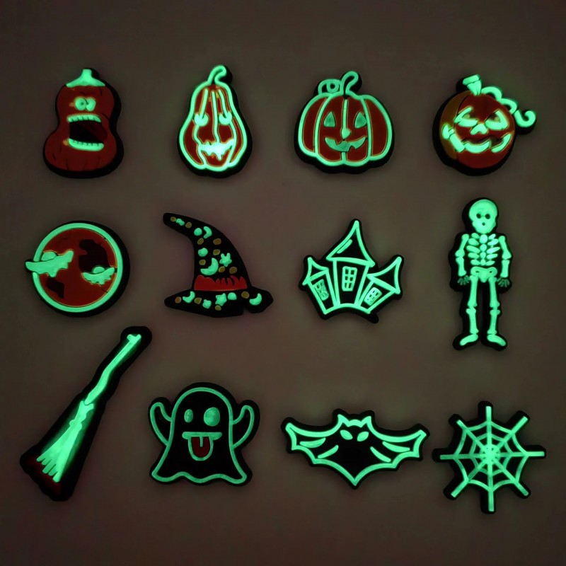 Welcome to purchase croc shoe charms wholesale, ideal for retailers and shoe accessory brands. Made of premium rubber, these glow-in-the-dark clog charms are perfect for Halloween collections. Add a spooky touch to your Crocs with Halloween pumpkin ghost skeleton bat luminescent Croc Shoe Charms!